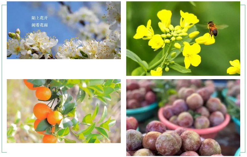 春天梅花、李花开;夏天可溯溪、杨梅、李子成熟;秋天稻谷黄、枫叶红;冬季砂糖吉染红山谷