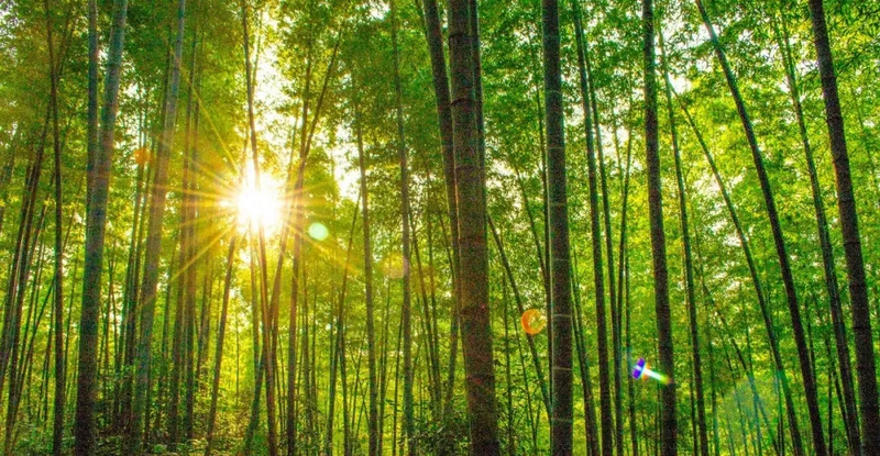 烈日炎炎的夏天,满山遍野的竹子长得婀娜多姿、郁郁葱葱,随风摇曳,竹影婆娑,“飒飒”的声音带来了一股清凉风。